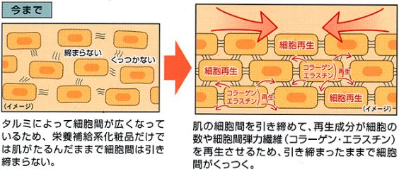 たるんだ細胞間を強力に引き締めながら、肌再生を進めます。